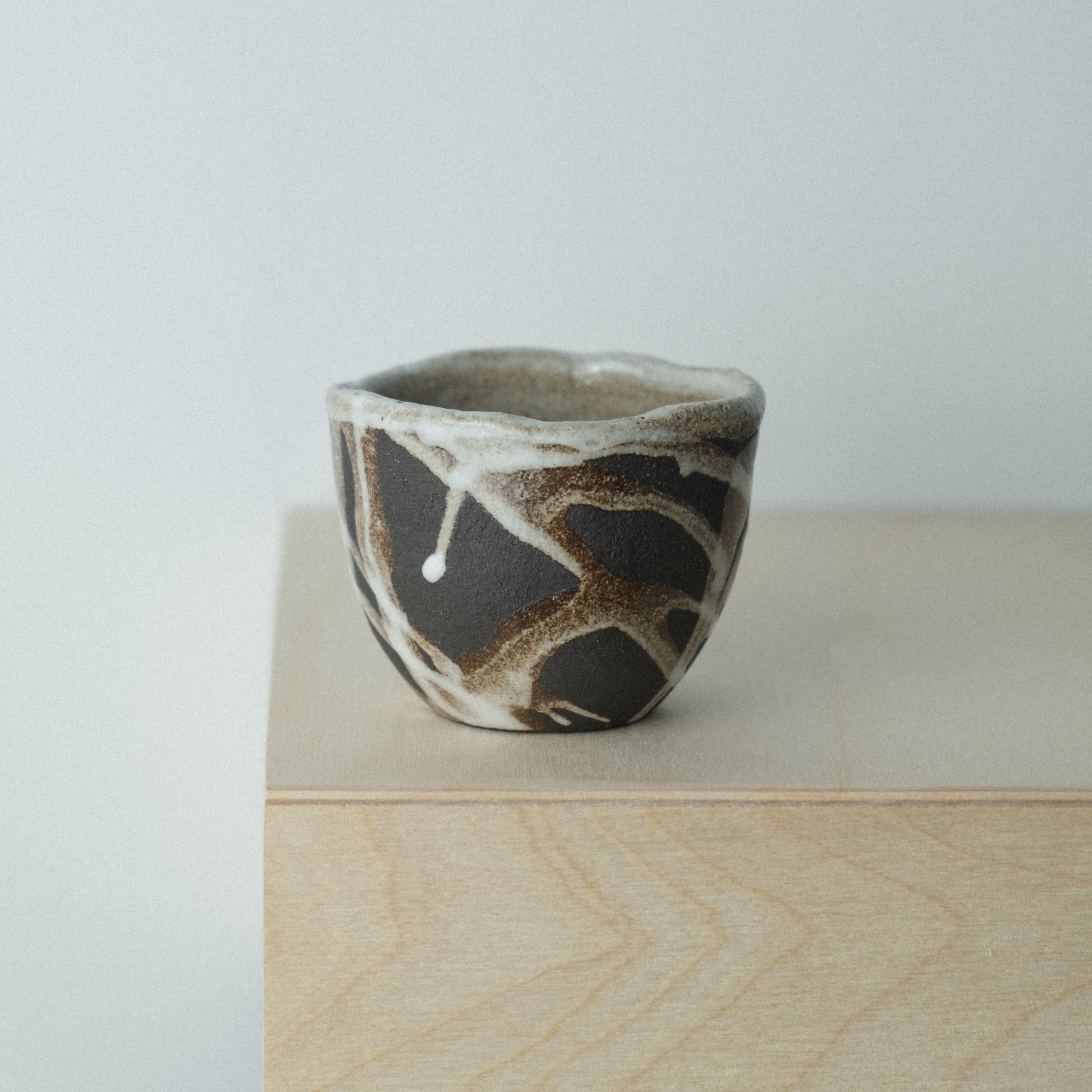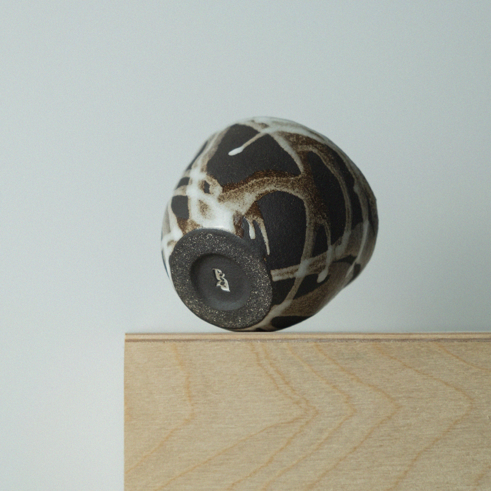 Ceașcă Espresso/Doppio realizată manual din gresie ceramică maro închis - neagră, de înaltă calitate, arsă la 1250 de grade Celsius. Peretele de ~6 mm menține excelent căldura și este extrem de durabil. Ceștile pot fi curățate în mașina de spălat vase. O alegere perfectă pentru utilizarea zilnică. Pe cești se poate simți textura lutului, iar glazura albă cu efecte speciale, adaugă un plus de autenticitate și naturalețe designului.