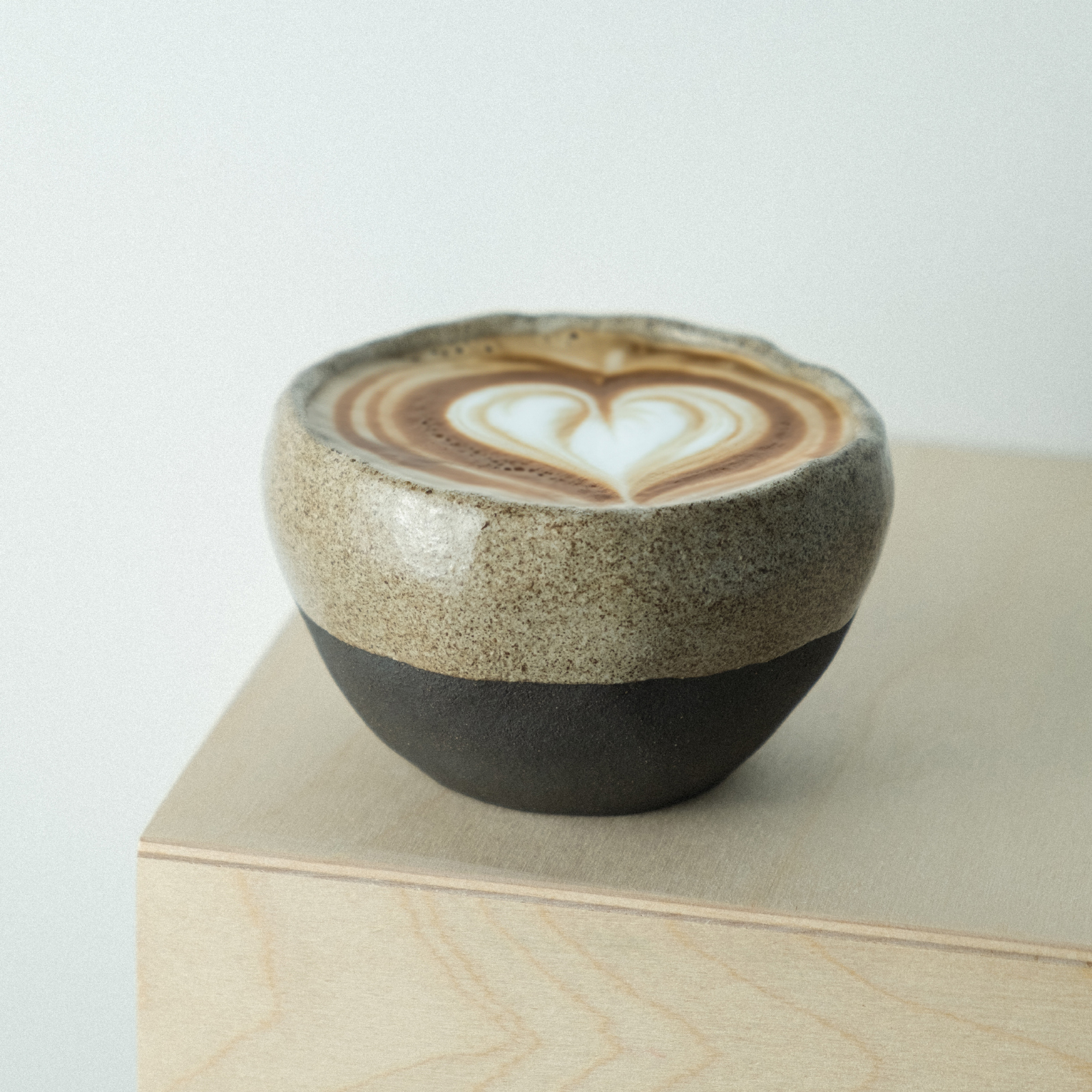 Ceașcă Cappuccino realizată manual din gresie ceramică maro închis - neagră, de înaltă calitate, arsă la 1250 de grade Celsius. Peretele de ~6 mm menține excelent căldura și este extrem de durabil. Ceștile pot fi curățate în mașina de spălat vase. O alegere perfectă pentru utilizarea zilnică. Pe cești se poate simți textura lutului, iar glazura albă/crem cu efecte speciale, adaugă un plus de autenticitate și naturalețe designului.