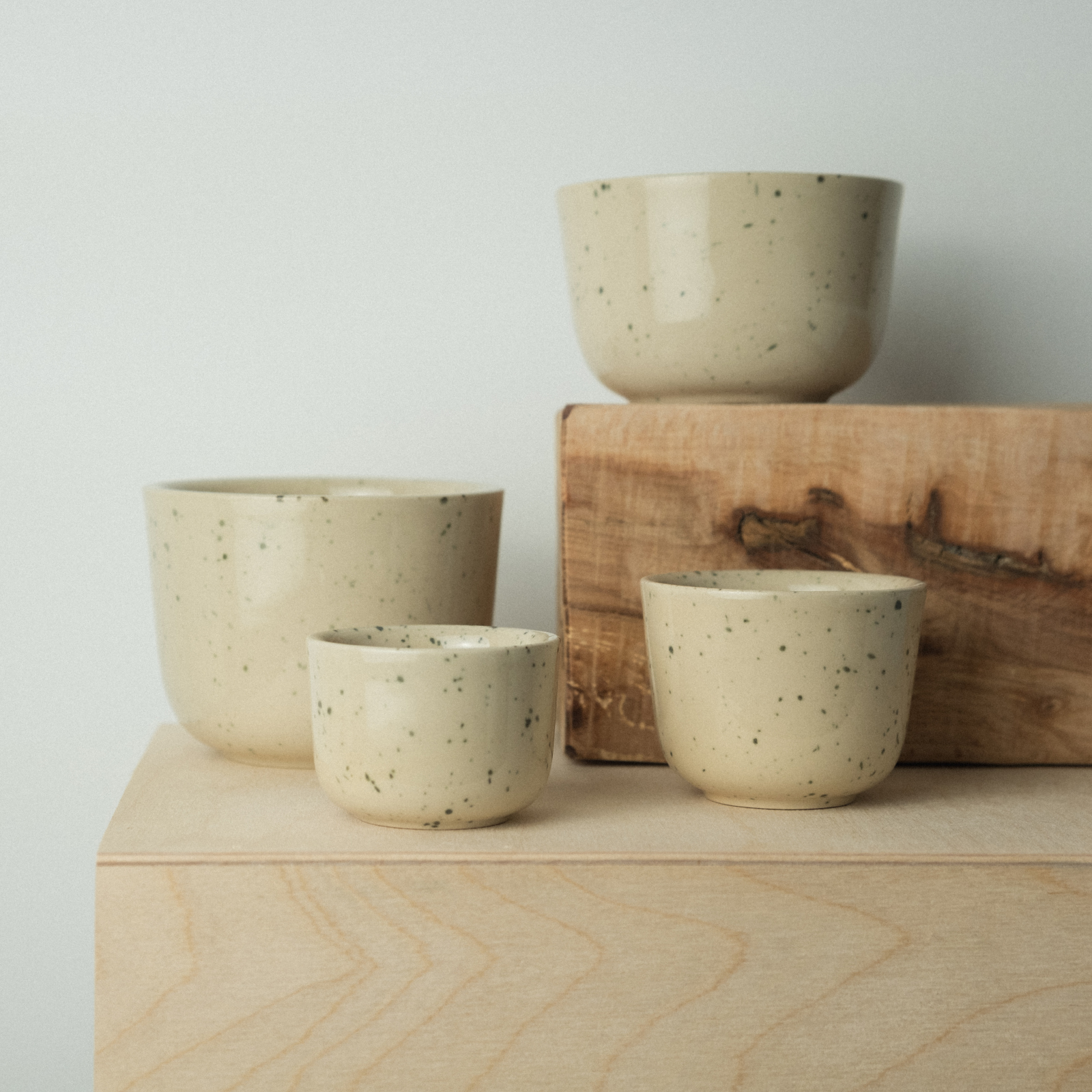 Ceașcă Cappuccino/Flat white realizată manual din gresie ceramică de înaltă calitate, arsă la 1250 de grade Celsius. Peretele gros de 7 mm menține excelent căldura și este extrem de durabil. Ceștile pot fi curățate în mașina de spălat vase. O alegere perfectă pentru utilizarea zilnică.
